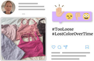 The journey to the right fitness apparel is littered with a long sequence of duds. We asked participants to show us what they were replacing and to tell us why. Here are the most common items women were looking to replace: