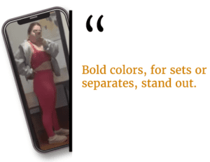 Most of our participants’ recent purchases served multiple purposes. From being suitable for cardio, strength training, and yoga or Pilates, to running errands and transitioning from the gym to lunch or school pick-ups, women reported wanting options that performed well across activities and offered layering opportunities.