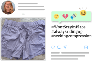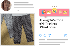 The journey to the right fitness apparel is littered with a long sequence of duds. We asked participants to show us what they were replacing and to tell us why. Here are the most common items women were looking to replace: